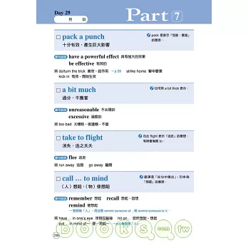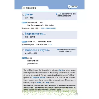 整理出現頻率最高的必考片語、同義詞、易混淆詞,幫助考生突破答題時,因不懂片語而無法了解題義的困境!