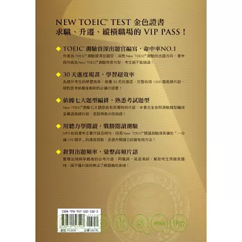 MP3 收錄書中主要片語及例句,採用 New TOEIC 閱讀測驗須具備的「一分鐘 150 個字」的速度錄製,是提升閱讀力的最有效方法!