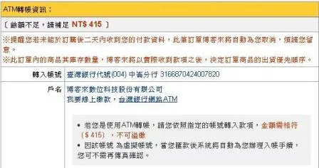 (請留意博客來提供的轉入帳號為16碼虛擬帳號,專屬於您的訂單)