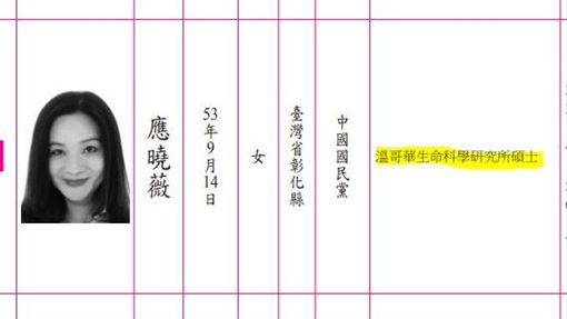 ▲眼尖網友發現議員應曉薇的學歷特別。(圖/翻攝自中央選舉委員會公報)